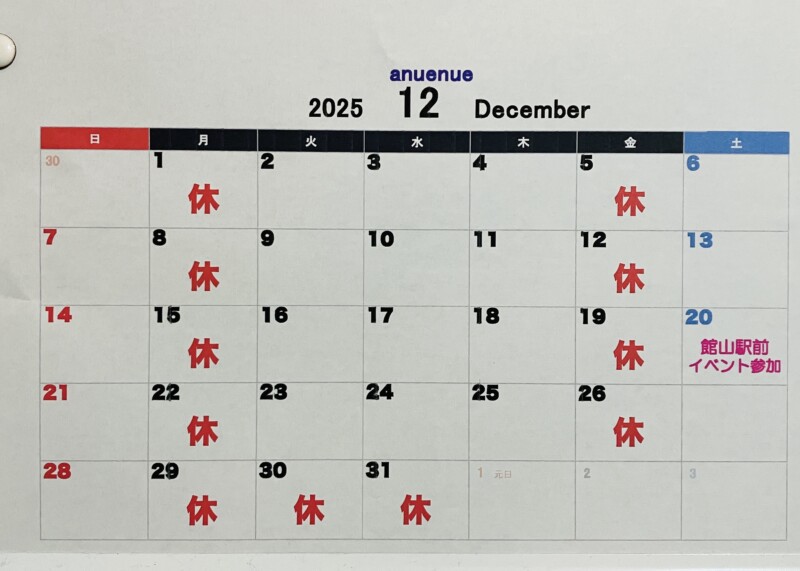 12月営業日のお知らせです