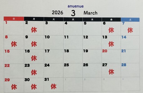 3月営業日のお知らせ